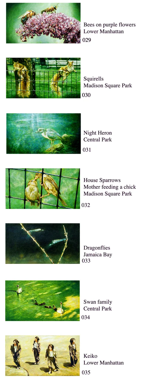 マンハッタンに住んで半世紀になります。近所の野生のスズメ達は手からパンを毎日クチバシに渡している親しい友人達です。近くでよく観察すればそれぞれのスズメの個性が見えてきます。その面白さを描き続けています。