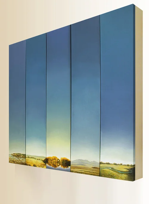 If you see from some distance these paintings connected together, you will see one large landscape.