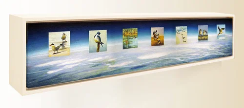 “32 New York Sparrows”, Oil on Linen, 12 in. x 90 in. / 30 cm x 225 cm